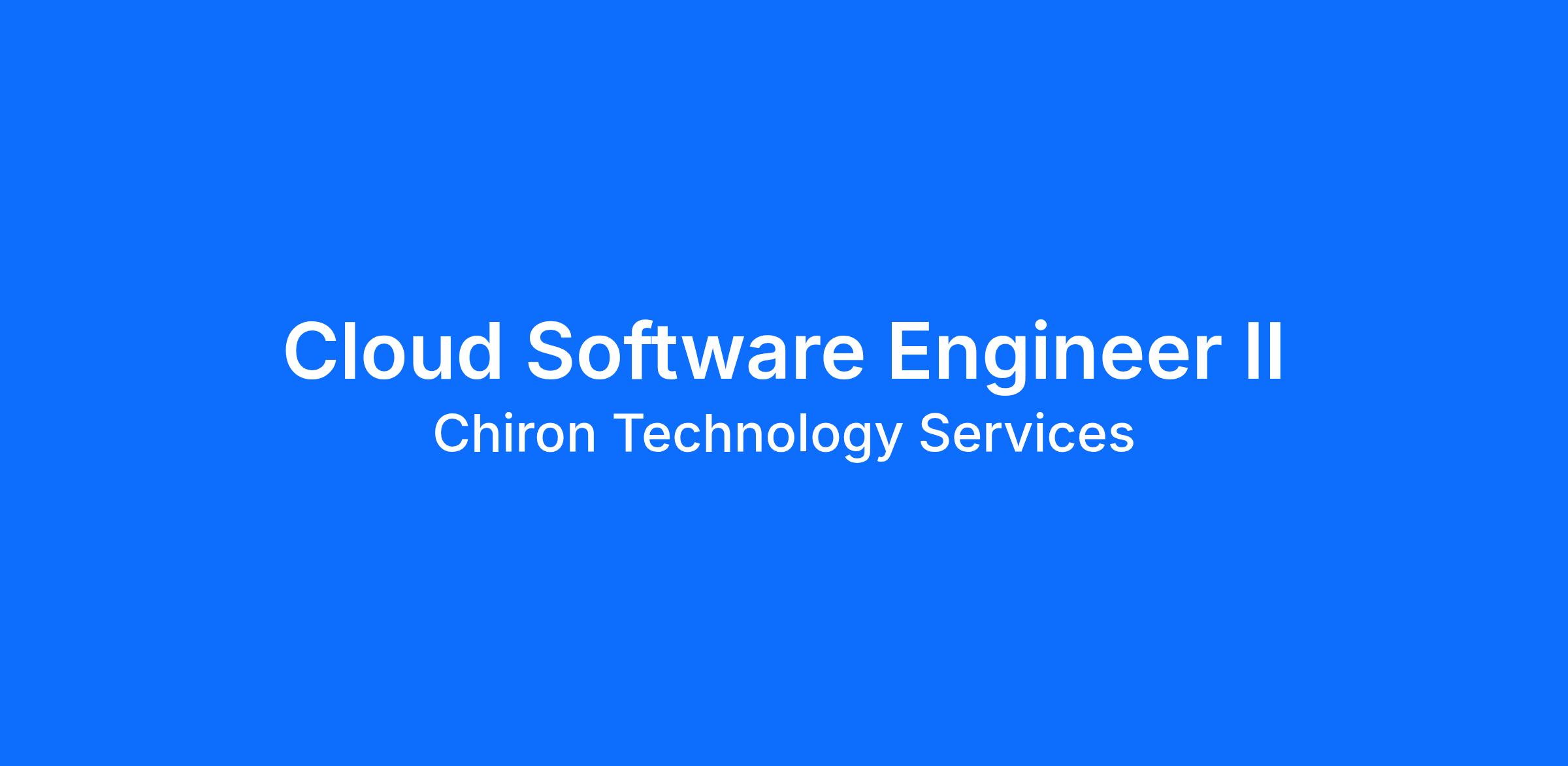 Chiron Technology Services, Inc. currently has a Cloud Software Engineer II career opportunity in the Annapolis Junction, MD area.